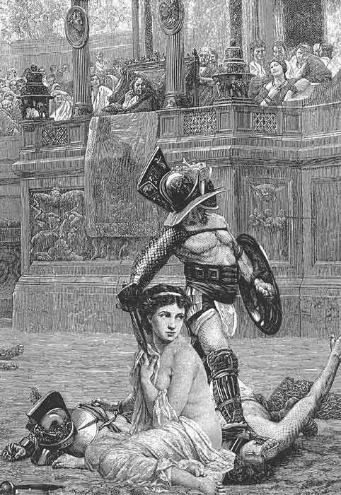 Remise au vainqueur -- un rimailleur ignoble et gras-- l'esclave se rebelle de nouveau. Elle est alors condamnée à mort. Sauvée par la clémence de la foule et les hurlements désespérés des spectateurs, Colchique en réchappe et quitte le film comme plus tard la Reine Christine à la proue de son Navire. Mais ceci est une autre histoire.