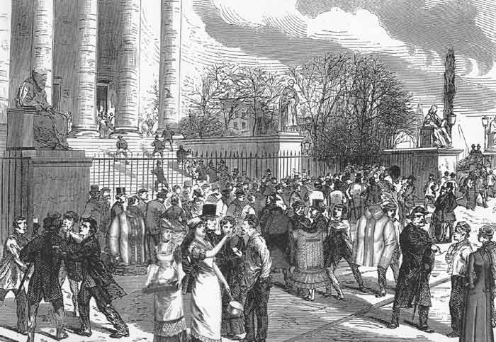 La foule se rassemble face à la députation. Passant de groupe en groupe, Euphrosine et Camomille réconfortent, encouragent, exhortent. Et pour finir glissent le dernier mot d'ordre : « Prenez vos vessies pour des lanternes... » Un peu partout c'est la multiplication des fûts.