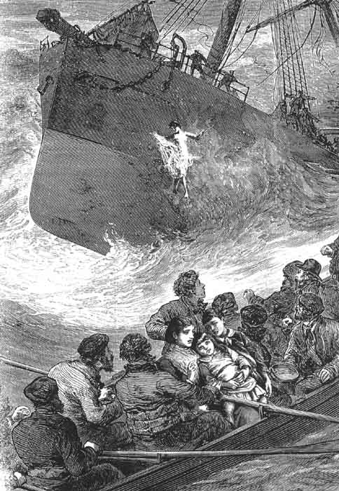 Après une homérique bousculade Euphrosine parvient à faire monter ses enfants dans un canot. L'on entend un peu partout d'effroyables cris et quelqu'un dira le lendemain avoir vu — de ses yeux vu — une vague silhouette blanche se jeter depuis le pont dans la mer déchaînée.